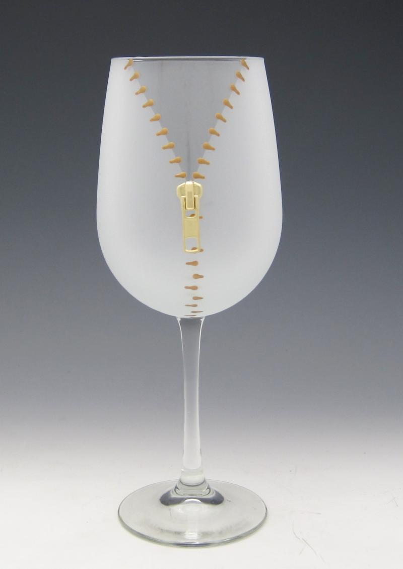 My favorite wine glass sold at the store is designed and made in the USA in the bay area! Wine Glass $40 each in gold or silver Zipper style.